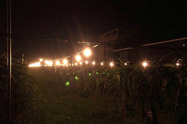 上次來時有提到的,火龍果需要細心的控制日照時間,所以晚上也需要提供火龍果們適當時間的照明
